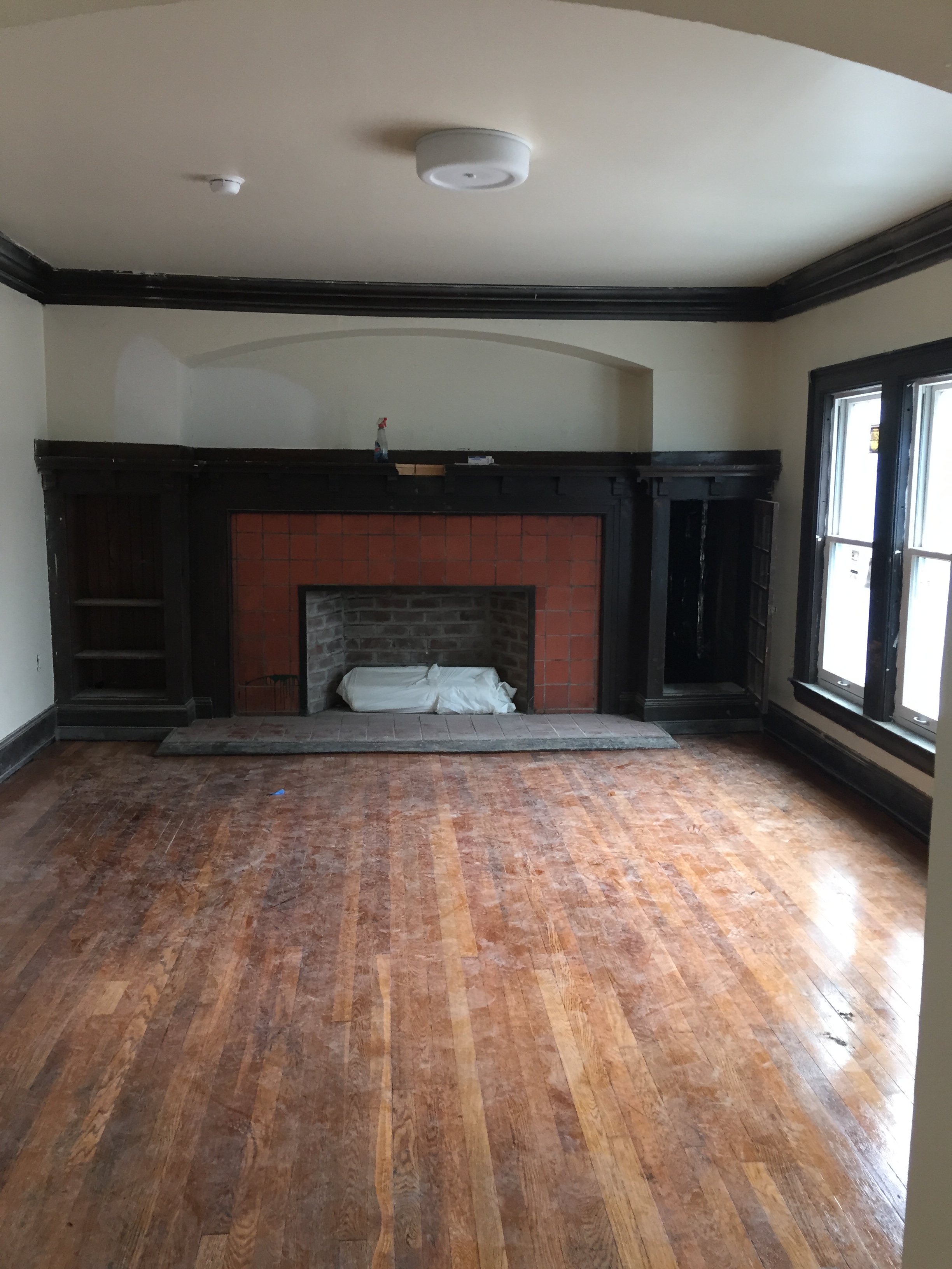 The painter said tomorrow will finish the painting and Saturday he will start on the third floor and work his way down checking for any touchups that are needed. The rest of the work was much like yesterday. When the painter is finished in the dining room the floor can be installed. Some of the lights are installed in the dining room. The dry wall finisher is still smoothing, the banister guy is still refinishing all of the spindles of the front stairs and railings are still being installed on other stairways. The door to the patio has been replaced, the old double door no longer was up to code. It was replaced with a single wider door. The air conditioner was up and running on the first floor today. The roofers were up top today, replacing shingles on the dormers and the front porch. I did see the concrete cutting truck there today. I am not sure where they might have been cutting a hole today. It is hard to fathom the number of holes that have had to me made in the walls and roof of our building. It just seems to go on forever.